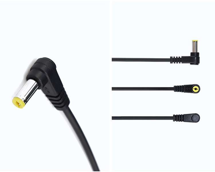 Interface de sortie : Connecteur coudé DC 5,5 × 2,1 mm / 4,0 × 1,7 mm / 3,5 × 1,35 mm
